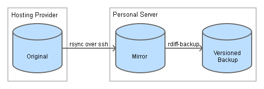 rsyncssh servermysqldump (or other tool for making an SQL dump of your database if not using MySQL)You need another machine on the Internet to perform the backup. It could be in your home or your office.